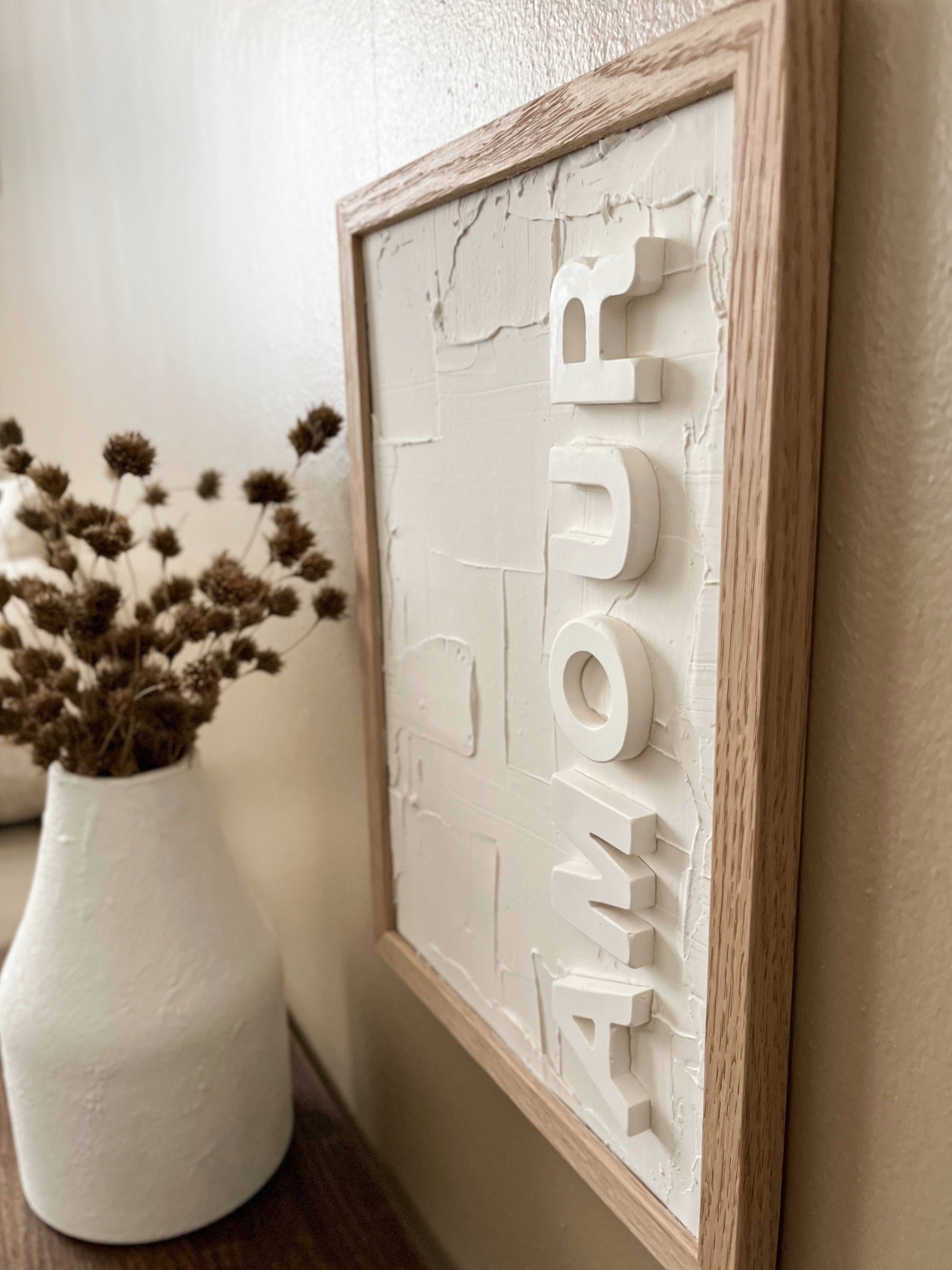 Le cadre mesure 32 x 24 cm et les lettres 4 cm.