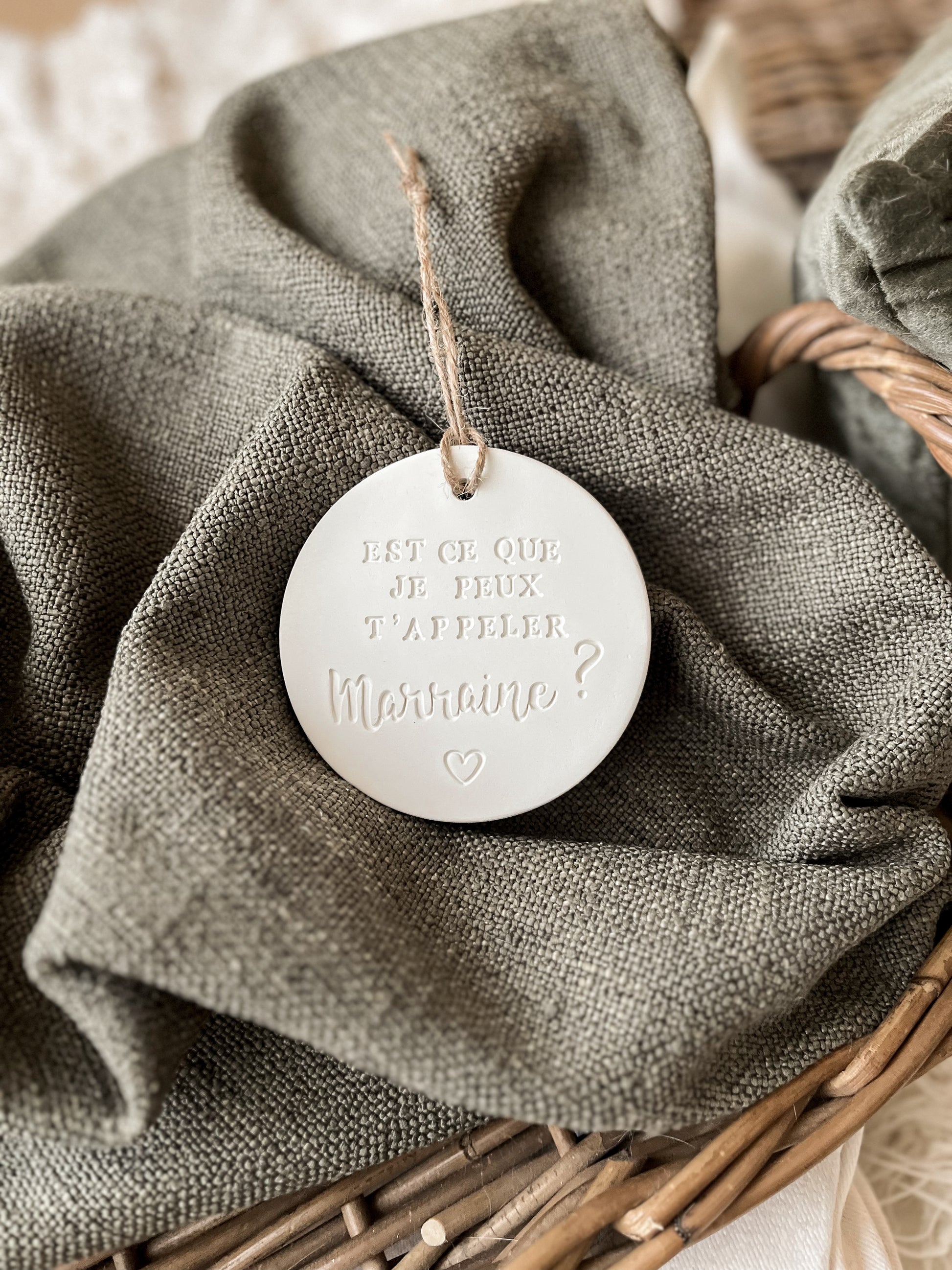 Vous cherchez une façon originale et personnelle pour poser la question « Veux-tu être mon parrain ? » ou « Veux-tu être ma marraine ? » et faire de ce moment un joli souvenir, cette suspension en argile est parfaite pour cette occasion !