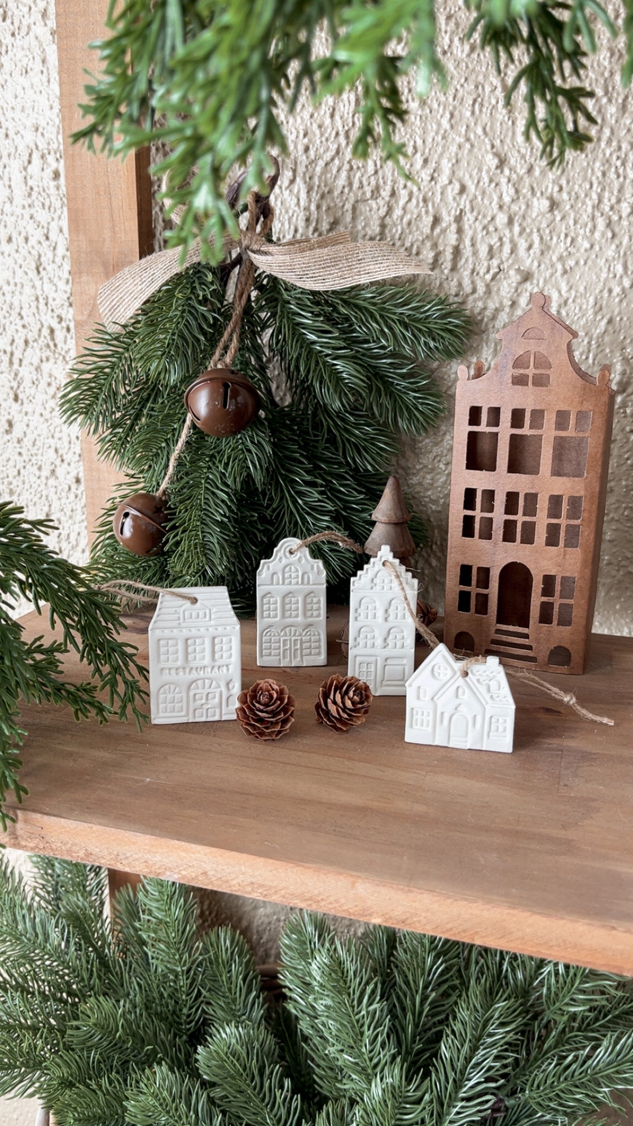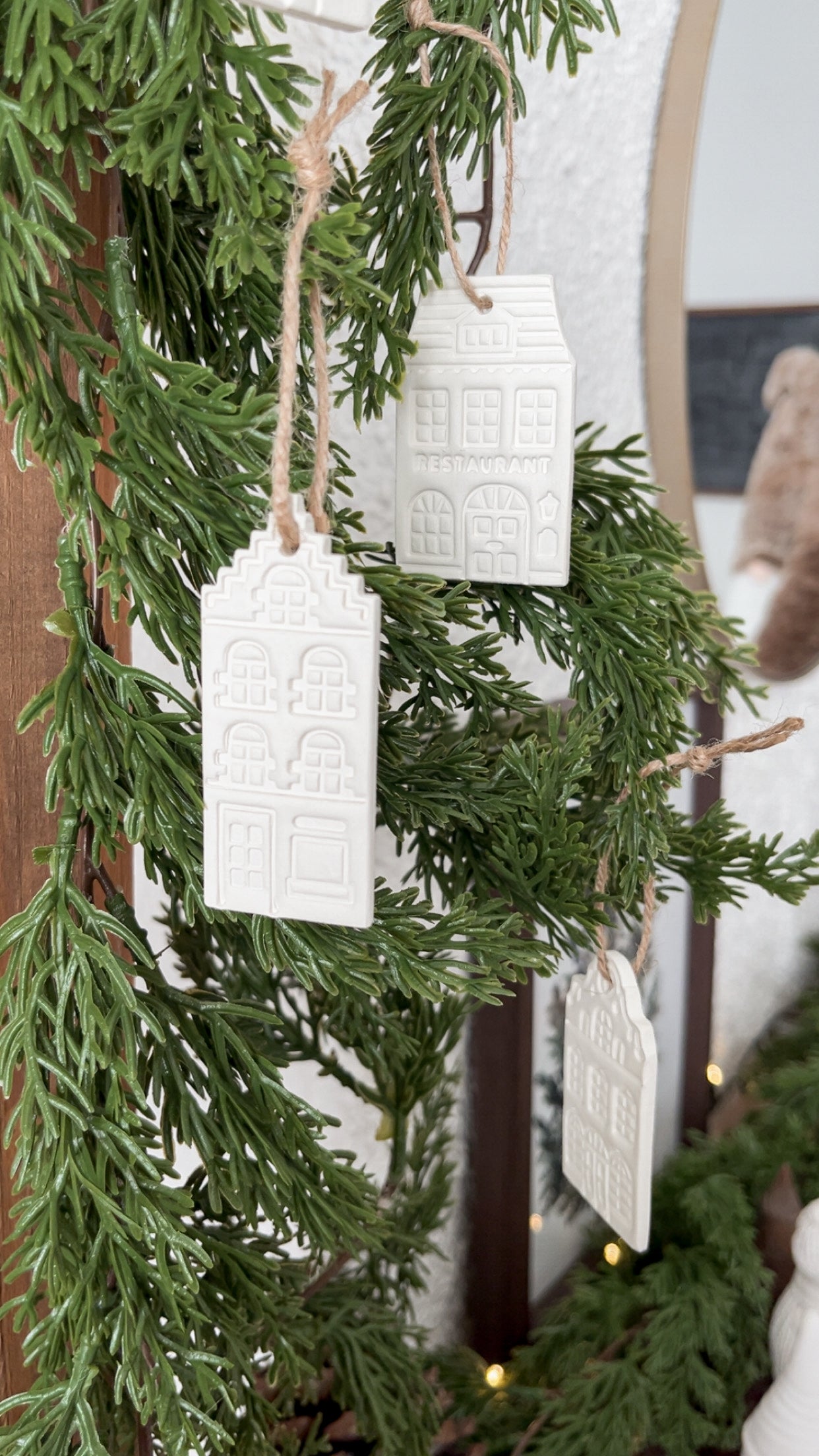 Inspirées des façades des maisons nordiques, ces suspensions en aruile sont idéales pour le sapin ou une couronne de Noël.