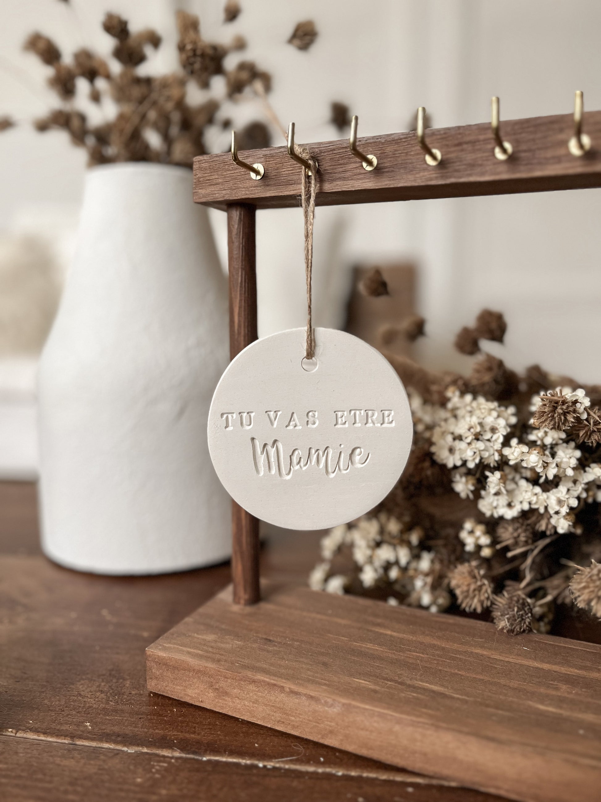 L'un de vos plus grands bonheurs est en chemin, découvrez une façon originale de le partager avec vos proches grâce à cette suspension en argile.